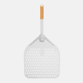 Met een pizzaschep haal je pizza’s veilig in en uit de oven zonder dat je handen of de pizza verbranden. Deze geperforeerde vierkante pizzaschep heeft een korte handgreep met siliconen grip, ideaal voor gebruik in kleine ruimtes. Gemaakt van lichtgewicht, duurzaam geanodiseerd aluminium, met perforaties om te voorkomen dat het deeg blijft plakken. Hittebestendig, praktisch en eenvoudig in gebruik.