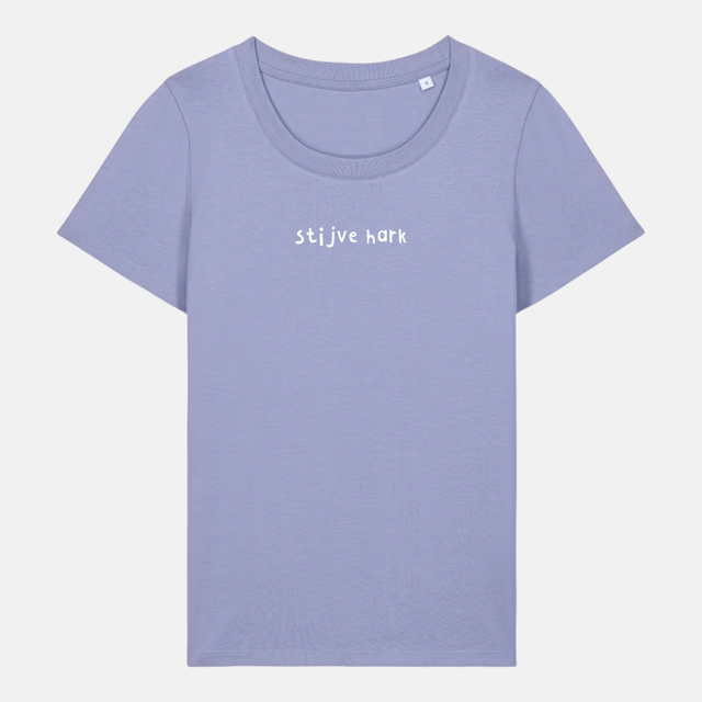 Dit T-shirt is gemaakt van 100% katoen en heeft een nauwsluitende fit voor vrouwen. Aan de voorkant staat de geborduurde tekst 'stijver hark'.