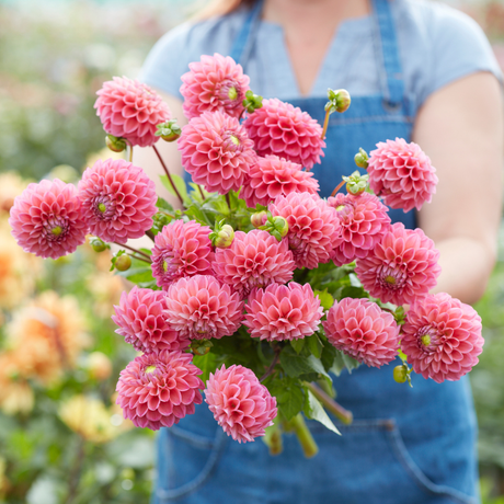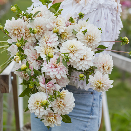 Dahlia’s zijn geboren boeketbloemen. Ze staan ook prachtig in huis als snijbloem. Snijd ze ’s ochtends vroeg voor de beste houdbaarheid, en blijf regelmatig plukken – dat stimuleert nieuwe bloei. Na het plukken komen er steeds weer nieuwe bloemen tevoorschijn. Dahlia’s bloeien vanaf de zomer tot in de herfst, waardoor je maandenlang kunt genieten van verse bloemen op de vaas én in je tuin.