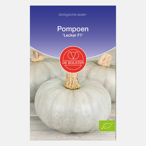 Pompoen 'Leckør F1' is een zilvergrijze squash. De Engelse benaming squash geldt voor alle eetbare pompoenen en dit ras behoort daar zeker toe. Het dieporanje vruchtvlees heeft een uitstekende smaak en de vruchten worden gemiddeld 1-1,5 kg zwaar.