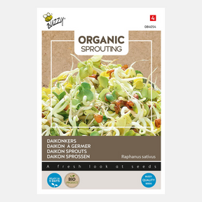 Daikonkers zijn eenvoudig te kweken met water en zijn speciaal ontwikkeld voor het produceren van groentekiemen. Deze spruiten zitten boordevol vitamines A, B1, B2, C en essentiële mineralen. De jonge scheuten hebben een frisse, pikante rettichsmaak, perfect als aanvulling op tonijn, zalm, makreel, haring, en heerlijke bij kaasgerechten en salades. Voeg deze smakelijke kiemen toe voor een extra kick en een gezonde boost!