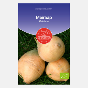Meiraap 'Goldana' van het type Ronde Gele is een snelgroeiend knolgewas waarvan het blad als raapsteel gegeten kan worden. 'Goldana' is een ronde knol en heeft geel vruchtvlees. Eén zakje is voor circa 8 m2, en de plantafstand bedraagt 30x15 cm.