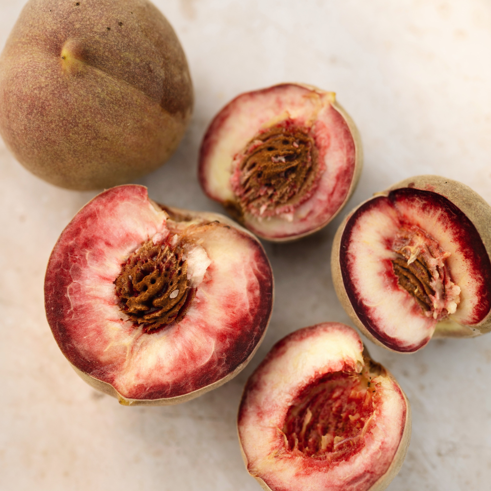 Een bijzondere perziksoort met zijn diepdonkere, roodpaarse schil en intens roze/rood vruchtvlees. 'Black Boy' is geliefd om zijn krachtige, zoet-aromatische smaak. Het is een echte delicatesse: heerlijk uit de hand, maar ook perfect voor jam, compote of als verrassend ingrediënt in hartige gerechten.