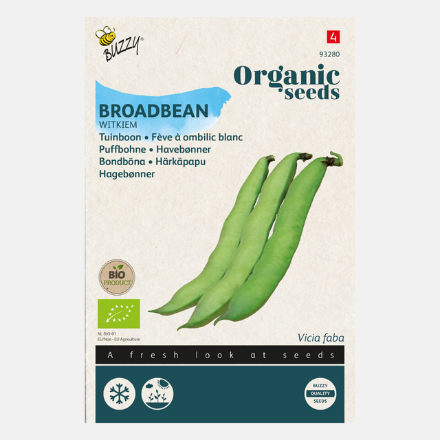 Deze Biologische zaden tuinbonen Witkiem kunt u zaaien in de volle grond, bij voorkeur in de volle zon, kan vanaf half februari. De jonge plantjes kunnen wat vorst verdragen. Maak de aarde los tot minstens 30 cm diep. tuinbonen mogen op flink bemeste grond gezet worden maar niet op langdurig natte en koude grond. Plaats aan het begin en eind van de zaairij een stok en span een touw hier tussen. Maak langs het gespannen touw op elke 10 cm een kuiltje en doe hier 1 boon in. Maak de kuiltjes weer dicht, zodanig dat de bonen 6 à 7 cm. onder de grond liggen. Druk de aarde licht aan en besproei de aarde met water als deze droog is. Haal het touw weg en plaats een steeketiket met de naam van het zaad aan het begin van de regel. Meerdere regels zaaien op 70 cm afstand van elkaar. Deze biologisch geteelde zaden zijn gecertificeerd door de stichting SKAL. U kunt deze producten herkennen aan het Biologische keurmerk en aan de termen 'Bio' of 'Organic'.