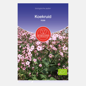 De roze bloemen van koekruid verschijnen na ongeveer twee maanden. Koekruid is makkelijk om te kweken. De korte bloeiperiode vang je op door meerdere keren te zaaien. Eén zakje is voor circa 10m2, en de plantafstand bedraagt 20x20 cm.