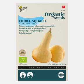 Butternut Waltham BIO. Half april zaaien onder glas, verspenen in potjes en half mei buiten uitplanten of dan pas buiten zaaien en in juni uitplanten. Heerlijke pompoen.