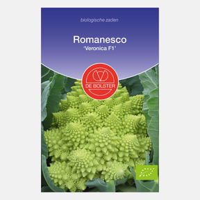 Romanesco 'Veronica F1' is a special and attractive cauliflower. This uniform crop consists of cauliflower with yellow-green turrets. This cauliflower is suitable for late summer cultivation. One bag is for approximately 13 m2, and the planting distance is 75x50 cm.