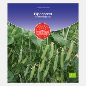 Rice pea 'First early May' is an early and productive variety, suitable for any type of soil. The seeds are quite fine and round. Pre-sowing in a pot or seed tray is possible as early as February and then planting out in the open ground in March at a planting distance of 150x5 cm. You can also sow directly in the open ground in the months of March and April at the same planting distance. The harvest period is from June to July. Fresh snow peas, peas and capuchins are the flavour enhancers of the vegetable garden. Problems with diseases and pests are hardly there and that makes it all the more attractive to grow these crops yourself. You can suffice with little fertilizer. Two main groups can be distinguished: short with a length of up to approx. 70 cm (stem) and long types (rice types). The rice types must in any case be grown along wire mesh. When growing along wire mesh, a row can be sown on both sides of the mesh. For all capuchin beans, peas and legumes, early sowing (March/April) produces the best results; sowing in May and later produces insufficient pod setting and problems with mildew.