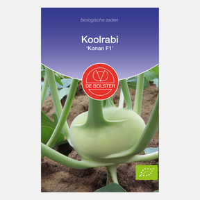 Kohlrabi 'Konan F1' is 'high on the leg'. This makes this variety less susceptible to diseases and easy to harvest. Uniform summer variety that thrives under various, also cooler conditions. This kohlrabi is very resistant to leaf breakage. Both the leaf and the thickened stem are very healthy and good to eat.