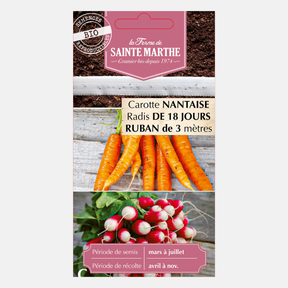 18-day radish seed produces early, half-long radishes with a large white tip and a pink-carmine collar. Nantes seed produces long, sweet and mild carrots with deep orange flesh. Suitable for early crops, ideal for summer cultivation.