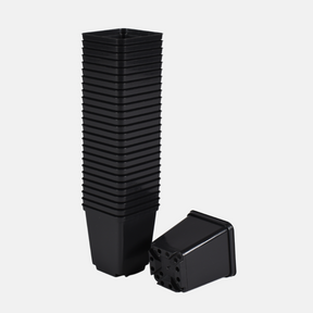 These P7 square plant pots (7 x 7 x 8 cm) are made of sturdy black plastic and will last for years. Thanks to the square shape, you can make optimal use of the space in undertrays, without the waste as with recycled pots.
