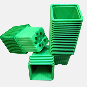 These P7 square plant pots (7 x 7 x 7 cm) are made of soft plastic. Thanks to the square shape, you can make optimal use of the space in undertrays, without the waste as with recycled pots.