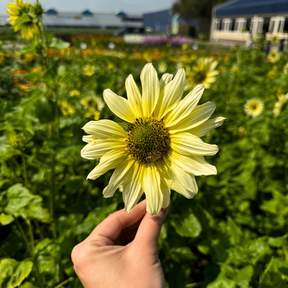 Italian Green Heart is a unique and striking sunflower variety. This beautiful flower has soft yellow petals with a surprising green heart, which gives a nice twist to the traditional sunflower. With its airy and branching growth habit, this annual sunflower is ideal for borders, picking gardens and even as a cut flower in a summer bouquet.