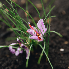 The saffron crocus is an autumn bloomer and grows best in poor, well-drained soil. Plant the bulbs 15 cm apart and 15 cm deep, between mid-August and mid-September, in a sunny spot. The crocus will then bloom around mid-October, the ideal time to harvest the flowers. Note! Harvest the entire flower, not just the saffron. Cut the flower as close to the ground as possible to encourage the bulb to bloom again in the same season. Saffron consists of the female flower parts (the stigmas) of the crocus (colored orange). Dry these stigmas in the oven at 40-50°C (104-122°F) until they are slightly crispy. You can also dry them on a radiator, although this takes a little longer.