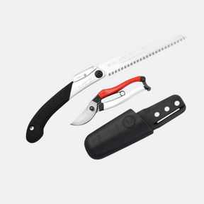 With this complete pruning set you have everything at hand for pruning shrubs, branches and trees. The set consists of Okatsune 103 pruning shears and a Silky Super Accel folding pruning saw, both of high-quality Japanese quality.