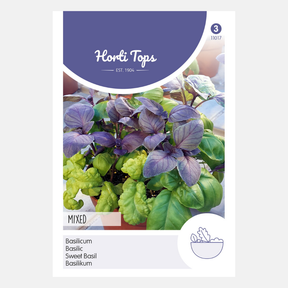 Basilic – Mixte. Semez en mai-juillet dans un pot de culture et repiquez après 4 semaines. Ou semez directement dans un pot de fleur et éclaircissez légèrement. En plus d'être frais, il est également délicieux séché ou conservé dans un bocal bien fermé. Le mélange contient du basilic citron, du basilic cannelle, de l'opale noire rouge et du basilic ordinaire.