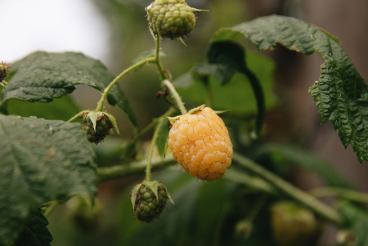 Framboise jaune d'automne aux gros fruits juteux et au goût raffiné et sucré.