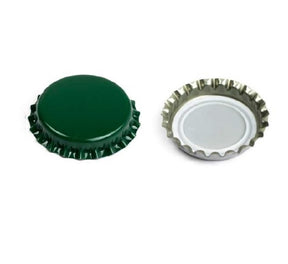 Bouchons de bouteilles verts d'un diamètre de 26 mm. Peut être fixé avec la tête standard de 26 millimètres d'une capsuleuse couronne.