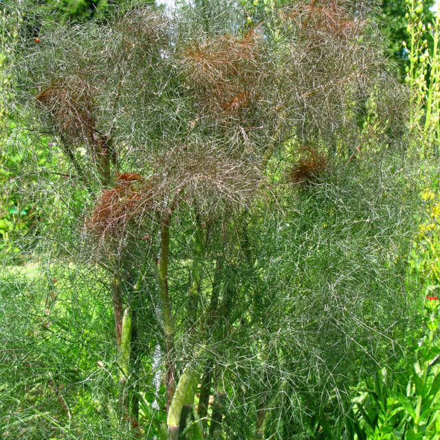 Le fenouil bronze est une plante gracieuse et aromatique aux feuilles délicates et plumeuses d'une chaude teinte bronze-pourpre. Cette plante herbacée vivace allie utilité et beauté : ses feuilles, au léger goût anisé, sont délicieuses en salade, avec des plats de poisson ou comme condiment. En été, de légères ombelles de fleurs jaunes apparaissent, attirant de nombreuses abeilles et autres insectes pollinisateurs.