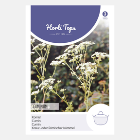 Cumin. De mi-mars à début juin en rangs et, en règle générale, légèrement éclaircis si nécessaire. Largement utilisé dans les plats indiens et arabes, ainsi que dans le fromage. Le Cumin purifie et stimule l'appétit.