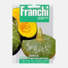 Berretta Piacentina est une citrouille grise plate très spéciale et unique à la chair jaune-orange. L’extérieur de cette citrouille est nervuré de verrues bosselées inhabituelles. La chair ferme, délicieusement sucrée, n’est absolument pas fibreuse. Les fruits peuvent peser jusqu'à 7 à 8 kilos chacun. Donnez à cette citrouille suffisamment d'espace, de soleil, d'eau et de nutrition. Peut être utilisé pour les soupes, les salades, comme légumes cuits et bien sûr pour la décoration. Annuel. Très bon rangement.