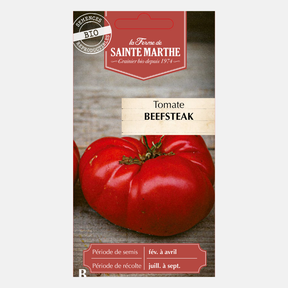 La tomate Beefsteak est une variété tardive aux gros fruits fermes qui varient de 200 à 700 grammes. La chair est fondante, très parfumée et contient peu de pépins, ce qui rend cette tomate parfaite pour réaliser des sauces et pour être utilisée dans les salades.