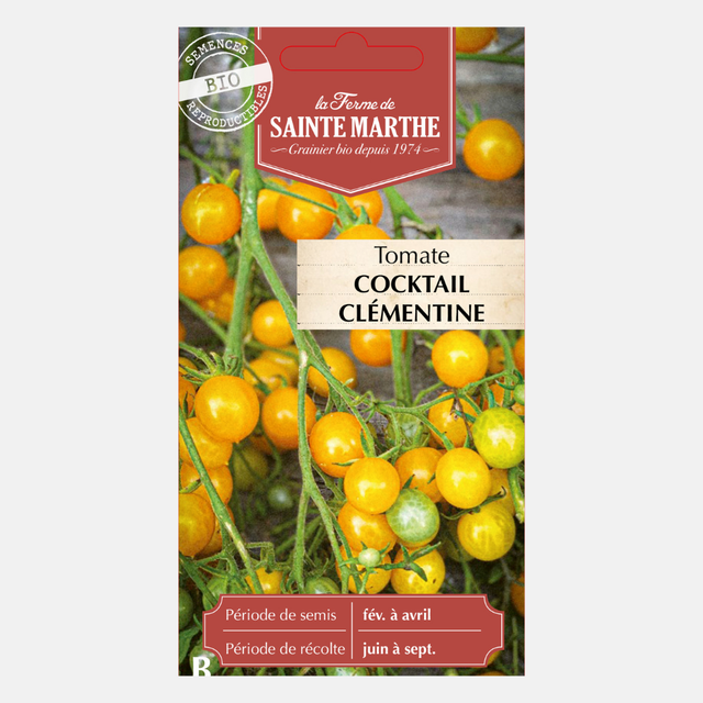 La tomate cocktail Clémentine produit des grappes de petites tomates fermes pas plus grosses qu'une mirabelle (5 à 6 onces). Ces tomates ont une texture ferme et juteuse et un délicieux goût sucré d'excellente qualité. Parfait pour les salades, les collations ou pour ajouter une touche de fraîcheur aux plats.