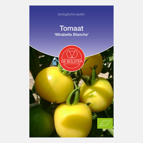 La tomate 'Mirabelle Blanche' est une plante aux fruits blancs, transparents ivoire et roses. Les grappes produisent 6 à 9 tomates. La culture en extérieur nécessite un endroit ensoleillé et abrité. Un sac fait environ 20 m2 et la distance de plantation est de 90 x 50 cm.