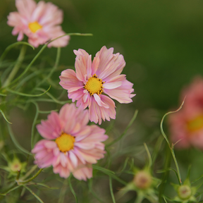 L'abricot est d'une beauté saisissante avec des fleurs aux tons chauds d'abricot, de rose et de jaune tendre. Ces belles fleurs apportent une touche aérienne et ludique au jardin, avec de fines feuilles ressemblant à des fougères et de longues tiges gracieuses. D'une hauteur de 90 à 120 cm, ce cosmos est parfait pour le fond d'une bordure ou dans un jardin de cueillette, où ils brillent en bouquets.
