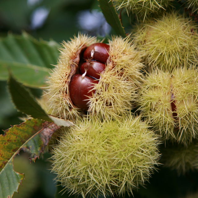 Deze laagstam kastanjeboom heeft geen specifieke cultivar, het is de originele kastanje Castanea sativa. Het is een compacte boom die ideaal is voor kleinere tuinen. Met een hoogte van 3 tot 5 meter biedt deze boom een overvloed aan eetbare kastanjes in de herfst. De kastanjes hebben een zoete, nootachtige smaak en zijn perfect voor diverse culinaire toepassingen. De boom gedijt goed in goed doorlatende, vruchtbare grond en heeft een zonnige locatie nodig om optimaal te groeien. Regelmatig snoeien bevordert een mooie kroon en gezonde groei.